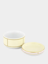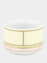 The New Diva collection’s porcelain sugar bowl features a vibrant yellow motif enhanced with delicate gold threading, and its lid contrasts with a shade of pink. This versatile piece can be separated into a small cup and plate, ideal for serving a range of dishes from appetizers to desserts. Combining vintage charm with contemporary design, Diva captures the glamour of 1950s cinema and celebrates iconic movie divas. It reinterprets Giovanni Gariboldi's award-winning Colonna shape, offering a modern twist on Ginori 1735’s classic elegance.