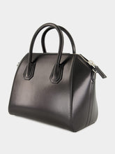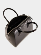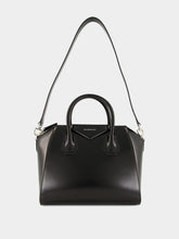 The Small Antigona bag from Givenchy is crafted in luxurious black Box calfskin leather, showcasing the label’s iconic structured silhouette. Featuring top handles, a detachable shoulder strap, and silver-toned hardware, it is finished with the signature pentagonal patch and debossed logo. The zip closure reveals a cotton-lined interior with a zippered pocket, offering elegance and practicality in a compact form.