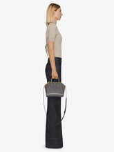 The Mini Antigona bag by Givenchy is an iconic piece crafted in luxurious Box calfskin leather. This structured design showcases elegance and versatility with its charcoal hue, golden-finish metal accents, and the signature pentagonal patch with a debossed GIVENCHY logo. Equipped with leather top handles, a removable and adjustable shoulder strap, and a secure zipper closure with a 4G zipper pull, it offers multiple styling options. The interior includes a zippered pocket, making it both stylish and functional. Handmade in Italy, this bag epitomizes modern sophistication.