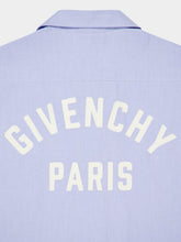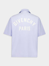 This short-sleeved cotton shirt from Givenchy features a relaxed fit and Hawaiian collar for effortless sophistication. Crafted in Portugal in a soft light blue tone, it is detailed with a grosgrain GIVENCHY PARIS patch embroidered on the back with zigzag stitching. Finished with a button closure, it’s a modern take on a classic silhouette, ideal for warm-weather dressing.