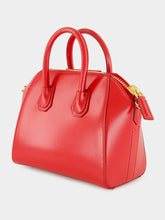 The Mini Antigona bag by Givenchy in vibrant vermillon Box calfskin is a compact icon of structured elegance. Featuring a zip closure, sleek leather handles, and a detachable, adjustable shoulder strap, it can be carried by hand or worn crossbody. Gold-finish metal accents and a pentagonal Givenchy signature patch enhance its refined appeal. Interior includes one main compartment with two flat pockets and a zipped pocket.
