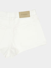 These white Polaris denim shorts by Givenchy redefine minimalism with a bold silhouette and structured finish. Designed in a high-rise cut with classic five-pocket styling, they offer a clean and sculptural take on summer denim. The crisp white hue enhances the sharp tailoring, while silver-tone rivets and a front button closure add signature detailing. A versatile staple for elevated casual wardrobes.
