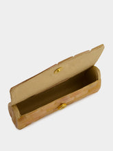 The Anouska clutch by Glorinha Paranaguá is masterfully handcrafted from polished light horn, showcasing natural textures and subtle variations in tone. With a compact, curved silhouette and grosgrain lining, it is the perfect accessory for sophisticated evening occasions or elegant resort ensembles. A refined statement piece rooted in artisanal craftsmanship.