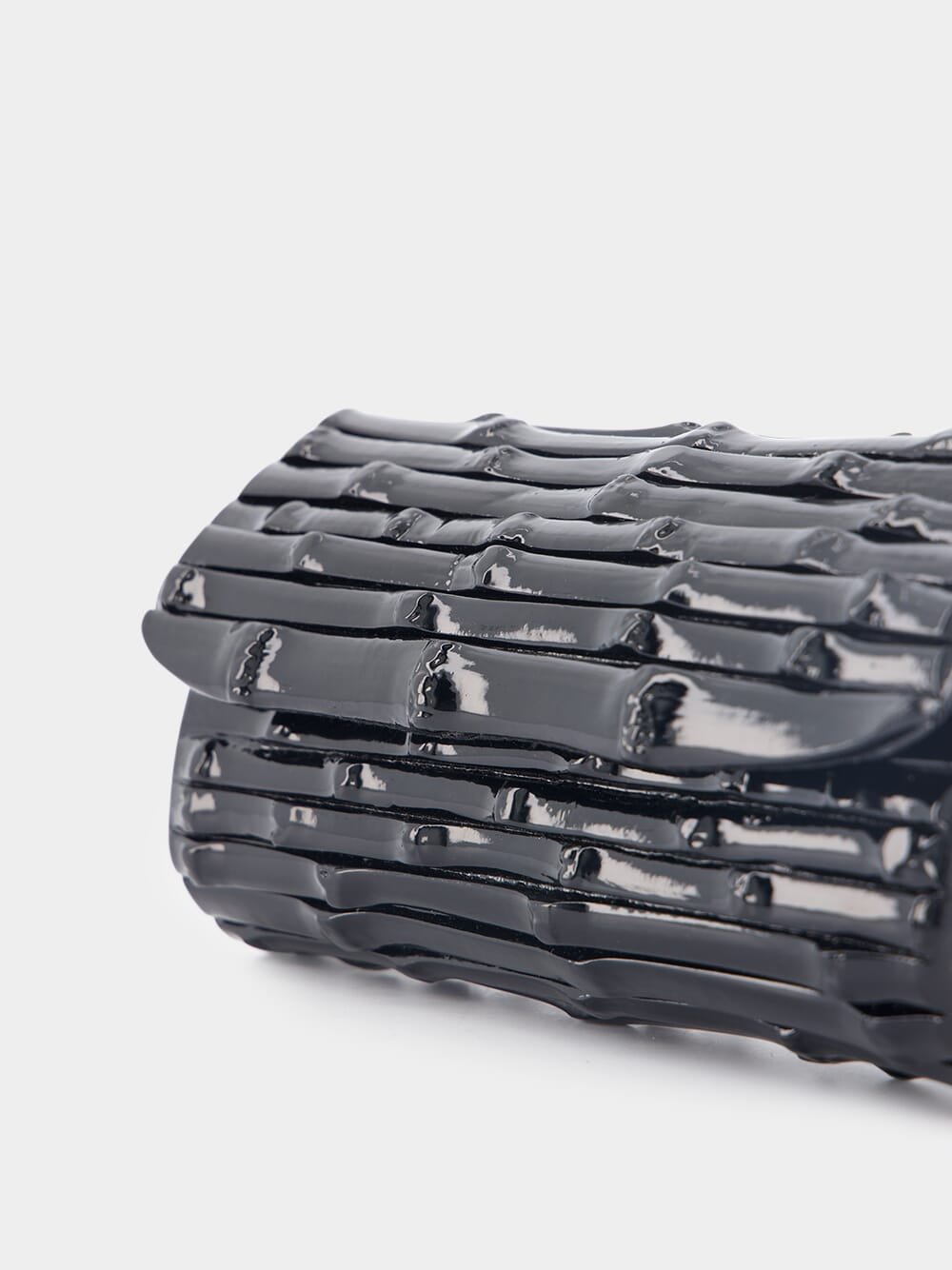 Bamboo Lacca Clutch handcrafted using sustainable bamboo, this clutch boasts a luxurious lacquered finish, creating a timeless and sophisticated aesthetic. Its sleek black hue adds an air of mystery and versatility, making it the perfect companion for any occasion.