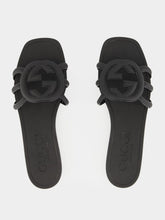 These Black slide sandals embody modern elegance through iconic House symbolism. Crafted from smooth rubber, the open design features a cut-out Interlocking G motif that adds bold visual identity. With a flat silhouette and 10mm heel, the sandal ensures comfort and effortless sophistication, ideal for sunny days or resort wear. A distinctive choice for elevated casual style.