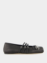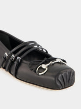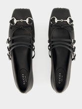 These elegant black leather ballet flats reinterpret a classic silhouette with Gucci's iconic silver-toned Horsebit detail. Featuring a square tucked toe cap, delicate leather bow, and triple strap buckle closure, the design exudes refined femininity. Crafted in Italy with “sacchetto” construction and a soft padded insole, they offer exceptional comfort while maintaining a polished, timeless aesthetic.