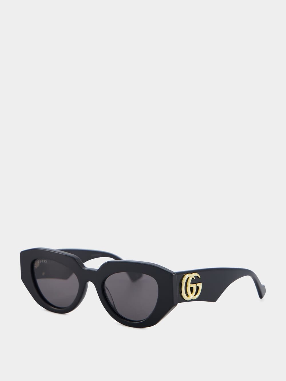Geometric-Frame Sunglasses, adorned with the iconic Double G logo for a touch of sophistication. Embrace modern design with the captivating geometric frame and sleek grey tinted lenses, while UV-protective technology ensures optimal eye safety. Enjoy comfort and durability with sculpted arms and curved tips, creating a perfect fit.