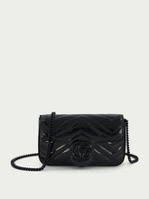 GG Marmont Patent Super Mini Bag, crafted with black patent matelassé chevron leather that effortlessly combines style and functionality. The bag features ruthenium hardware with a black ceramic-effect finishing, adding a touch of edgy sophistication. The microfiber lining with a suede-like finish offers a luxurious feel. Complete with an attached key ring that can be attached to a separate bag, it offers versatility and convenience. Adorned with the iconic Double G logo, this bag is a symbol of timeless elegance. The chain shoulder strap adds a chic touch, allowing for easy and stylish wear. Additionally, the Gucci card case wallet will fit inside this product, providing a practical and compact storage solution.