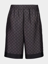 Grey and Black GG Monogram Silk Twill Shorts