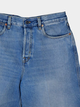 These light blue wide-leg denim trousers are crafted from certified stonewashed cotton for a refined yet relaxed feel. Featuring a five-pocket design, button and zip closure, and a petite fit, they reinterpret casualwear with understated sophistication. The back is adorned with a Gucci Rosso Ancora naplak label, adding a subtle signature finish to this modern wardrobe essential. Made in Italy for timeless quality and craftsmanship.