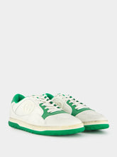 MAC80 sneakers a stunning blend of off-white and green leather for men. The off-white fabric insert and interlocking G embroidery add a touch of luxury and sophistication. Designed with a round toe and rubber sole, these trainers offer maximum comfort and support for all-day wear. The Gucci embroidery adds an iconic touch to your ensemble.
