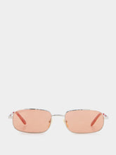 Rectangular Frame Sunglasses, showcasing a shiny silver-toned metal frame that exudes modern sophistication. The temples, adorned with ridge detail and Gucci lettering, feature black acetate tips for a polished finish. The solid red and Guccissima mirror lens adds a bold and stylish touch. With rubber nose pads for added comfort, these sunglasses provide 100% UVA/UVB protection, ensuring your eyes are shielded from harmful rays.