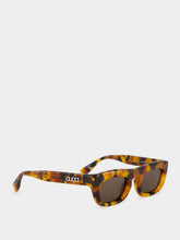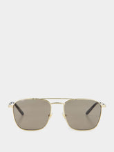 Gucci Aviator sunglasses with gold metal frame with Gucci logo and metal temples, and brown lens. 100% UVA/UVB protection. The glasses will arrive in a velvet case.