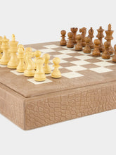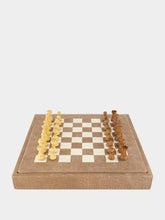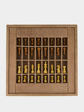 The Chess Box 35cm Alligator Vison redefines the classic game with refined luxury. Handcrafted in France, it features an alligator-effect leather exterior and a smooth leather inlay. The removable board conceals a compartment for 32 handcrafted boxwood and rosewood pieces. A striking decorative object and a timeless expression of elegant play.