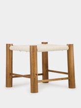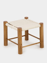 A minimalist wooden stool by Honoré featuring a sturdy rope-woven seat, combining rustic charm and modern aesthetics. Perfect for adding texture to living spaces or as a practical seating option.