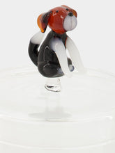 The Glass Box with English Foxhound is a playful yet refined piece from the handcrafted Dogs collection. Made of clear glass and topped with a flame-worked English Foxhound figurine, it adds a unique decorative accent while offering practical storage for small items. A charming addition to elegant interiors.