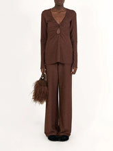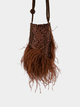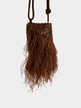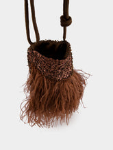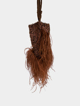 The Brown Jane Eyre Mochila is a unique shoulder bag with an elegant and playful design. Made from a blend of silk and polyester, it features asymmetrical beaded detailing and hanging feather embellishments for a dramatic touch. The bag has an open top for easy access, and its lined interior offers a luxurious finish. Ideal for evening events or stylish outings, this bag adds a bold statement to any ensemble.