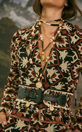 Soulful Dance Belt, crafted from vegan leather, this belt is perfect for dressing up dresses and skirts, adding a stylish and sophisticated touch. With its classic design, it's an adventurer's must-have for a timeless look. The intricate hand embroidery pattern adds an artistic flair, while the clean silhouette enhances your silhouette.