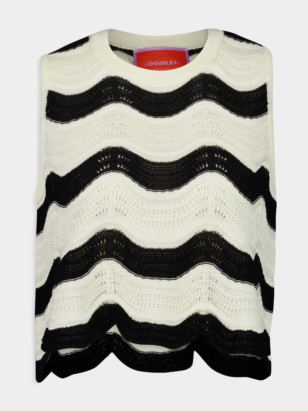 This midi skirt by La DoubleJ is crafted from 100% cotton and features a bold chevron pattern in black and ecru. Designed with a flattering high waist and a gently flared silhouette, it offers both structure and movement. Timeless and graphic, it’s a versatile piece that pairs effortlessly with both polished blouses and relaxed knitwear.