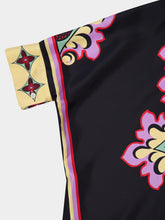 The Palazzo Placée shirt by La DoubleJ is a luxurious long-sleeved piece crafted in 100% silk, showcasing a rich foulard-style print on a black base. With its fluid drape, button-up front, and classic collar, it evokes vintage glamour with contemporary ease. The vivid pattern placement adds visual interest and elegance—ideal for day-to-night transitions or standout layering.