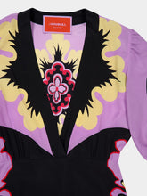 The Marlene Placée maxi dress by La DoubleJ is a striking statement piece crafted in luxurious silk with a vivid all-over placée print. Designed with short sleeves and a plunging V-neckline, it features a fluid silhouette that gently flares from the waist to the floor. Its bold palette and artistic pattern embody Italian glamour and effortless sophistication.