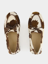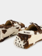 These distinctive driver moccasins are crafted in Italy from luxurious cow print calf hair, offering a bold take on a timeless silhouette. Designed with a leather lace detail, cushioned calf leather insole, and a rubber pebble sole for enhanced comfort and grip. Finished with an 8mm heel, they blend artisanal flair with elevated everyday style.