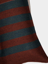 Juniper Linen Pillow in Linen, featuring a mysterious merlot-brown ground that adds depth and intrigue to any space. This high-quality pillow cover boasts a contrasting back adorned with spruce green stripes, creating a stunning visual contrast. Crafted with precision, it effortlessly combines style and sophistication, making it a versatile addition to your interior design.