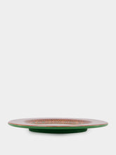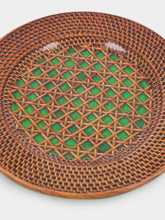 This exquisite dinner plate, crafted from durable melamine, features a stunning woven design in warm earthy tones, contrasted by a vibrant green pattern at the center. Perfect for adding a touch of sophistication to any dining experience, this plate is ideal for both casual and formal settings.
