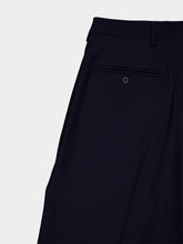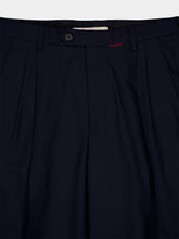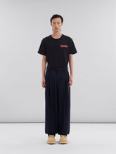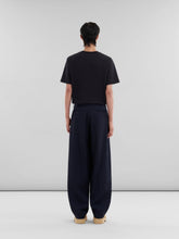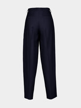 These straight-leg trousers are crafted from virgin tropical wool in a deep blue shade. They feature a regular mid-rise fit with front pleats, a zip fly, and an off-centre button closure. The hand-stitched contrast Marni mending logo on the front adds a unique touch. The trousers are lined for added comfort.