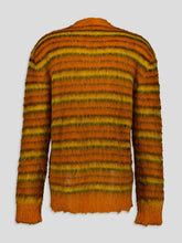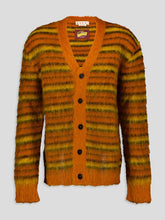 Striped V-Neck Cardigan, crafted with a luxurious mohair blend, this cardigan offers a soft and cozy feel. The eye-catching horizontal stripe pattern adds a touch of elegance to your look. With its knitted construction, V-neckline, long sleeves, and front button fastening, this cardigan combines comfort and style effortlessly.