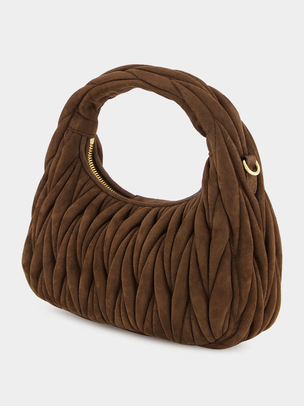 Dark Brown Wander Matelassé Suede Hobo Bag