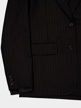The Black Single-Breasted Pinstripe Jacket combines classic tailoring with modern flair. Defined by its sharp pinstripe motif, this jacket features a straight fit and an embroidered logo, offering a bold yet sophisticated take on traditional women’s suiting. Designed with a feminine cut, it includes a hidden button closure, sleeves with toggles and buttons, welt pockets, and a back vent for added comfort and movement. Lined for ease, this jacket is versatile and stylish, fitting up to two sizes larger for a relaxed, contemporary fit.