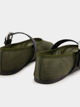 The Olive Green Mesh Fabric Ballerinas by Miu Miu redefine the classic ballerina flat with a summery twist. Crafted from breathable mesh fabric, these flats offer a fresh texture that’s both elegant and playful. The bold strap closure across the upper provides a modern, secure fit, while the leather-covered insole ensures comfort with every step. A rubber sole adds durability, and the embroidered logo on the upper, alongside the screen-printed logo on the insole, gives a subtle signature touch. Perfect for both casual outings and chic summer days, these ballerinas offer effortless style with a contemporary flair.