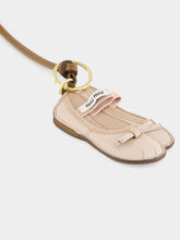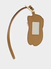 Inspired by the iconic Miu Miu Ballet shoe, this water lily pink leather keychain brings a whimsical and elegant charm to your accessories. Featuring a delicate bow detail, branded strap, and a discreet mirror on the back, it’s designed with a gold-tone split ring for easy attachment. This playful leather trick adds a personal and stylish accent to your favorite bags, embodying the house’s signature femininity and creativity.