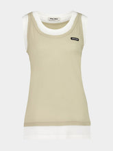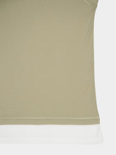 This layered tank top in white and pumice showcases a youthful, summery spirit through the subtle transparency of ribbed jersey. The loose fit and scoop neck enhance comfort and versatility, while the twin-needle hem adds durability. A small logo patch subtly accents the chest, reinforcing its modern, branded appeal. Perfect for effortless layering or standalone wear on warm days.