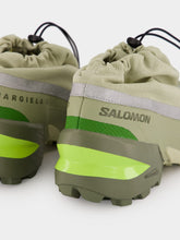 These MM6 Maison Margiela x Salomon low-top sneakers blend avant-garde design with technical performance. Featuring a unique drawstring cover and a sleek silhouette, these sneakers offer superior grip and stability, ideal for urban or outdoor adventures. Finished in subtle green tones with contrasting accents, these sneakers provide a contemporary look with functional appeal, making them a versatile choice for fashion-forward individuals.
