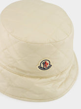 This light beige bucket hat from Moncler features a timeless diamond-quilted design, offering both style and practicality. Crafted from lightweight longue saison nylon with a soft cotton canvas lining, it’s lightly padded for comfort and warmth. Finished with a signature logo patch, it pairs effortlessly with matching outerwear for a refined, coordinated look.