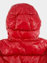 The Glareins short down jacket in vibrant red brings elegance to classic outerwear with its tapered silhouette and braided trim detailing. Crafted from glossy nylon and lined with lightweight longue saison, it features down filling for exceptional warmth. An adjustable hood, zipped pockets, and snap-button chest pocket offer both style and functionality. Ideal for both day and evening looks.