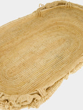 Crafted by hand in natural raffia, this generously sized decorative plate showcases detailed langoustines along the rim, blending artisanal craftsmanship with marine-inspired elegance. Its intricate texture and organic silhouette make it a captivating statement piece for contemporary interiors, perfect as a centerpiece or a refined display element.