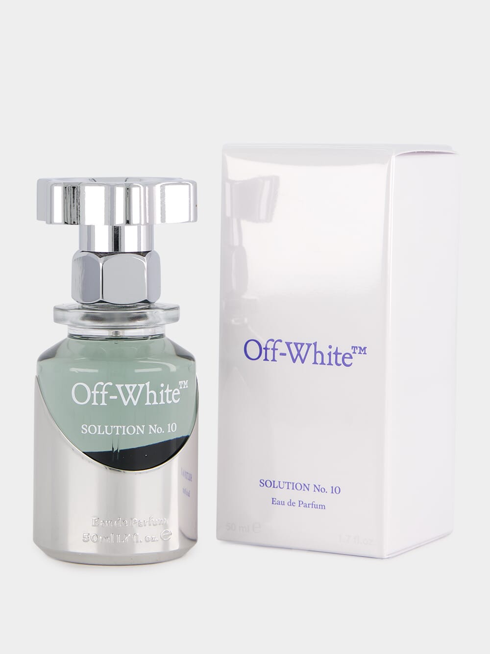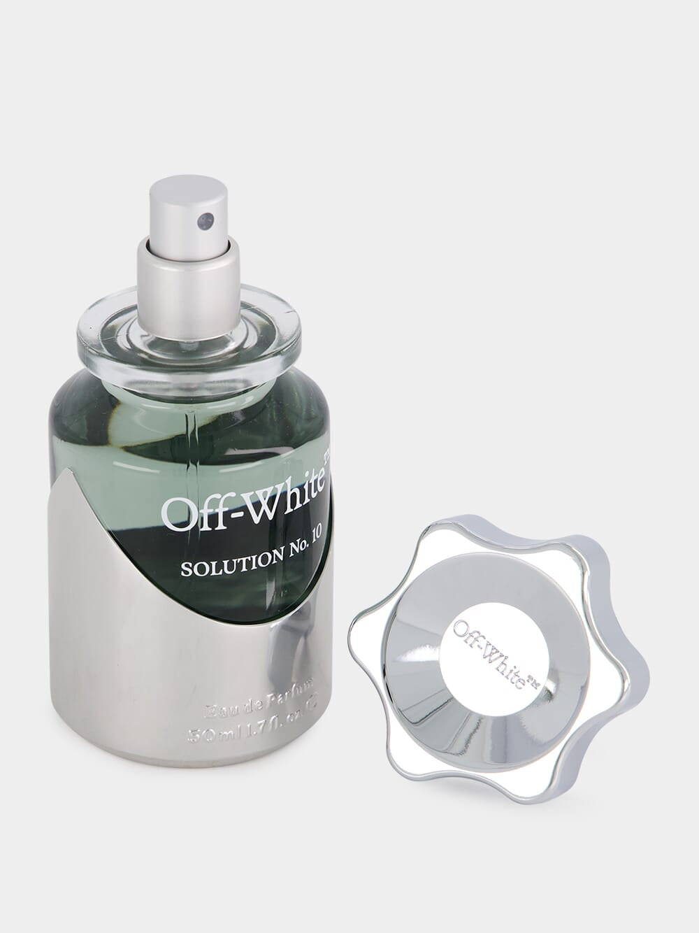 Off-White™ Solution No.10 Eau de Parfum embodies a rich, woody musk with a touch of forest green. Infused with notes of pink peppercorn, patchouli, and sea salt, it exudes a unique character crafted by Sidonie Lancesseur. Enhance your scent profile by layering with SOLUTION No. 7, SOLUTION No. 8, or your preferred SOLUTION fragrance. This Eau de Parfum serves as a personal olfactory expression, encased in a sleek, chrome 50ml bottle that combines collectible elegance with everyday luxury. Created in partnership with beauty curator Isamaya Ffrench, the bottles boast refined finishes and distinctive accent colors reflecting their inner aromas.