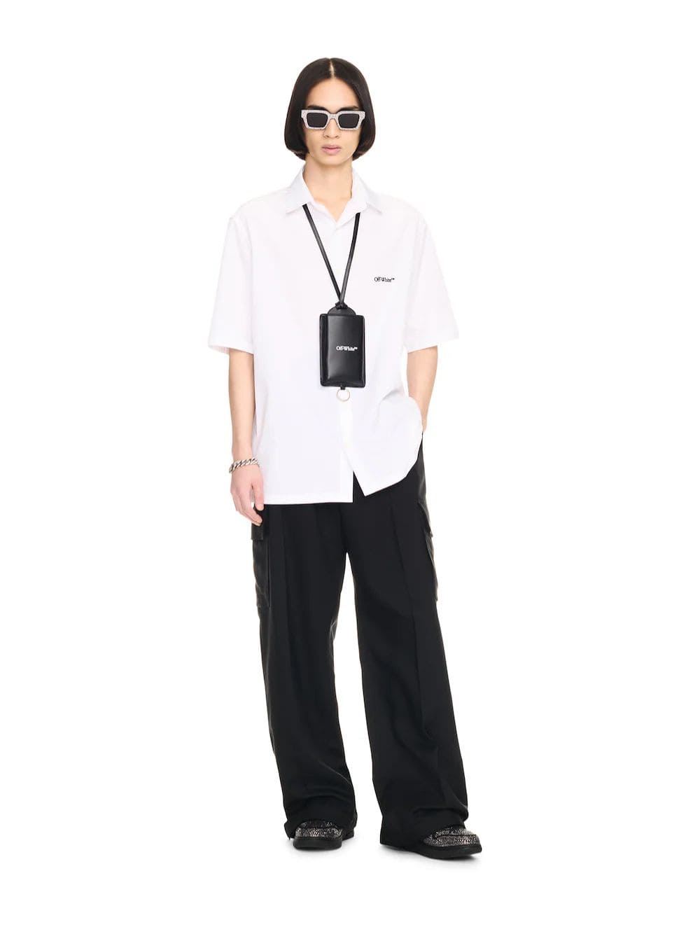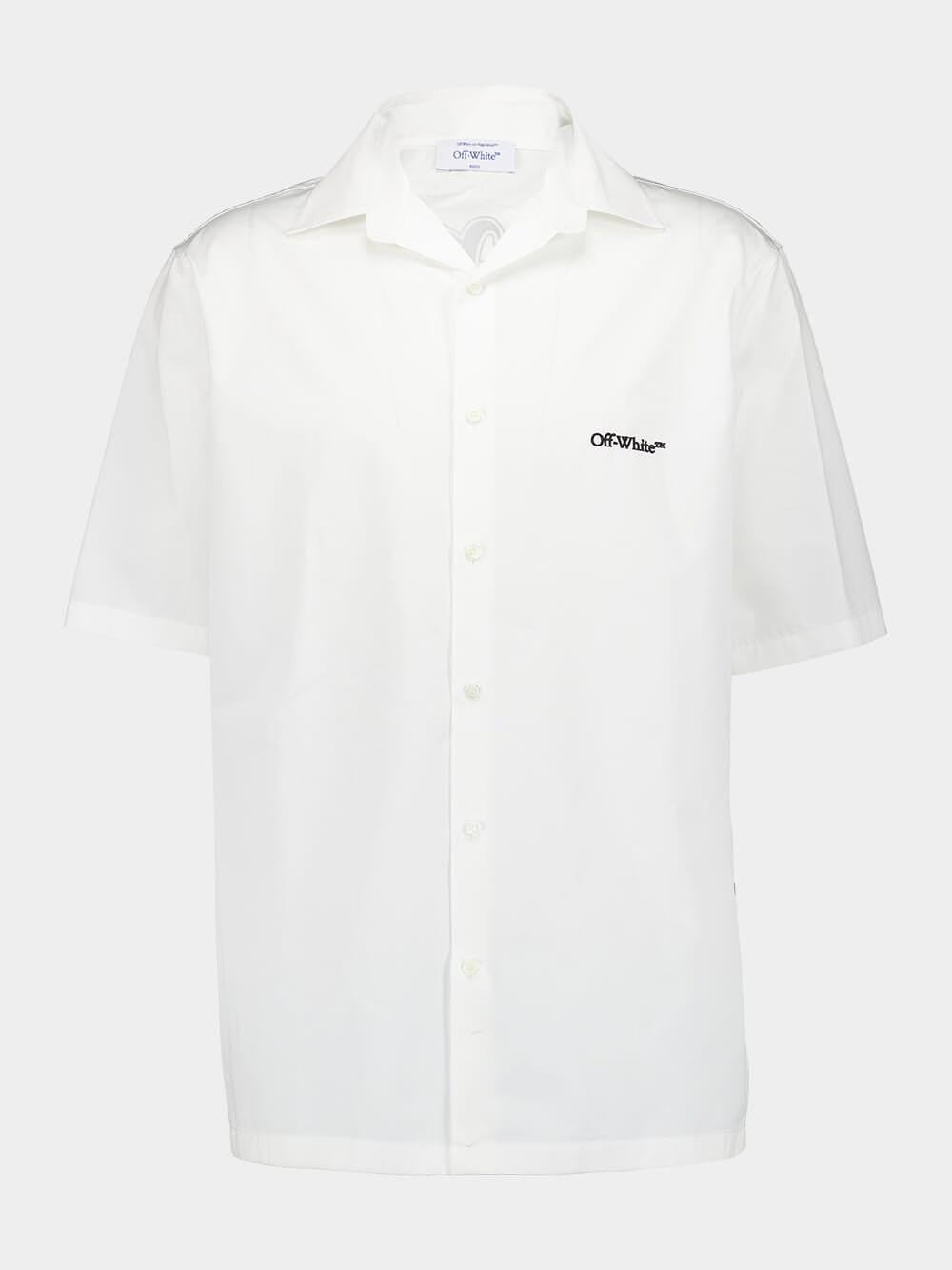 This 100% cotton poplin shirt has a boxy fit and features a small logo on the front pocket with a gothic text logo and arrow on the reverse. The short sleeves and button-up front add to its casual yet stylish appeal. Perfect for adding a modern edge to your wardrobe, this shirt combines comfort with a distinctive design.