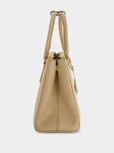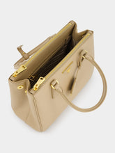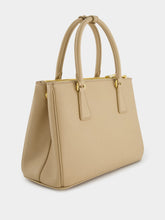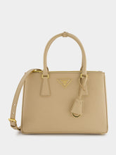Medium Prada Galleria Saffiano Leather Bag, crafted with premium leather handles and a detachable, adjustable leather shoulder strap, this bag offers versatility for any occasion. The removable leather key ring and external zipper pockets provide convenient storage options. The metal hardware and leather triangle with a metal lettering logo on the front add a touch of elegance. With snap closure on the sides, logo-print nylon lining featuring two pockets, including one with a zipper, and purse feet for added protection, this bag is a must-have accessory.