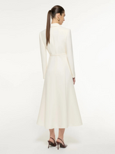 The Tailored Midi Dress in Cream by Roland Mouret exemplifies the brand's dedication to sophisticated design and impeccable craftsmanship. Crafted from a luxurious blend of acetate and polyester, this midi-length dress features a structured collar that adds a touch of masculinity to its feminine silhouette. The A-line skirt offers a flattering fit, while the removable fabric-covered belt cinches the waist, enhancing the dress's elegant lines. Additional details include removable shoulder pads for structure, providing a refined finish. Fully lined for comfort, this dress is a perfect choice for formal occasions or evening events, embodying modern elegance.