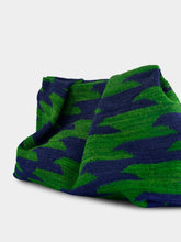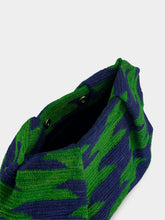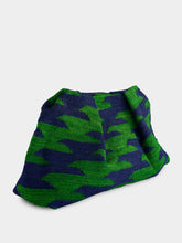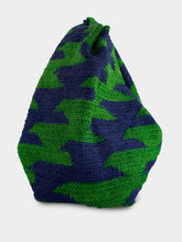 Sisal and wool blend medium pouch with geometric pattern and magnetic closure.