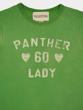 Crafted from soft cotton jersey, this laurel green T-shirt features a vintage-inspired "Panther 60 Lady" print in contrasting birch. With a classic crew neck and short sleeves, it blends retro charm with casual elegance. Made in Italy, it offers a flattering slim fit and is perfect for layering or wearing as a statement piece.