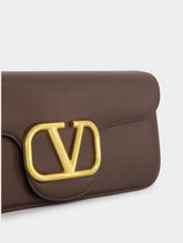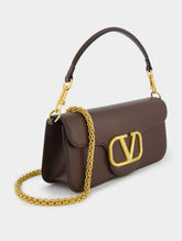 Locò Leather Shoulder Bag, a statement piece featuring the iconic VLogo Signature. This luxurious bag offers versatility with its single detachable top handle and a detachable chain-link shoulder strap. Its foldover top securely fastens with a magnetic closure, revealing a spacious main compartment with convenient internal card slots.