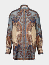 The Ascension Indienne Shirt by Zimmermann brings romantic elegance to tailored silhouettes. Crafted in fluid silk with a soft sheen, this long-sleeved button-up shirt showcases a refined blue Indienne floral motif. The design nods to classic menswear with a relaxed, slightly structured cut, while the delicate print and luxurious fabric elevate it for sophisticated daywear or evening transitions. A timeless staple with graceful movement and polished charm.