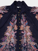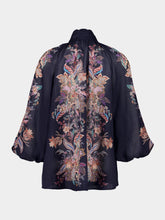 The Navy Blue Blouse with Billowing Neckline and Rhiannon in Ramie by Zimermann offers a refined yet modern look. Crafted from lightweight ramie, this blouse features a flattering, open neckline design and billowing sleeves that hit just above the elbow, creating an effortlessly chic silhouette. The rich navy color adds depth, while the breathable fabric ensures comfort and style throughout the day. Perfect for pairing with skirts, trousers, or denim, this blouse is a versatile piece that brings both elegance and ease to your wardrobe.
