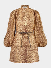 The Cascadian Tunic Mini Dress in Tan Leopard by Zimmermann is crafted from breathable linen, combining natural texture with a bold, graphic print. This relaxed mini silhouette features long sleeves with elasticated cuffs, an H-neckline with subtle gathers, and a softly flared hem for effortless movement. Designed for warm-weather ease, the striking leopard pattern adds a statement edge to this lightweight and versatile everyday piece.