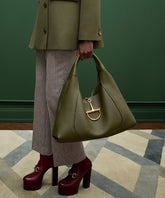 Gucci’s Softbit Maxi is crafted in supple leather with signature detailing. In forest green, it embodies natural refinement, a tone that feels both grounded and confident, adding depth and modern elegance to any wardrobe.